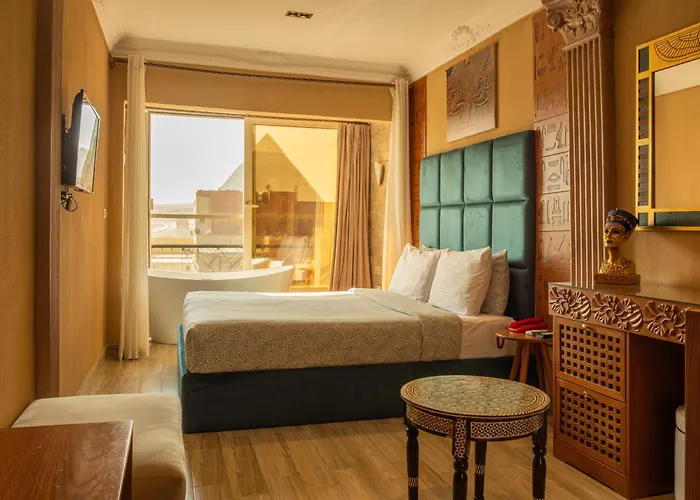 Brassjimmy Pyramids View Hotel Cairo, located a 17-minute walk from Great Pyramid of Giza, features Wi-Fi throughout the property. Offering a location within reach of the mysterious Great Sphinx of Giza Sculpture, this hotel overlooks mountain and has an American-style restaurant.